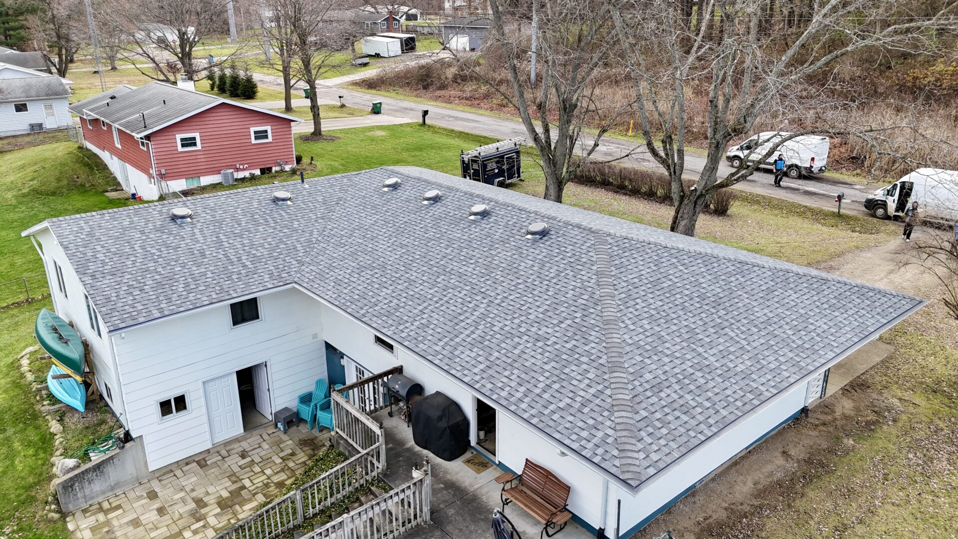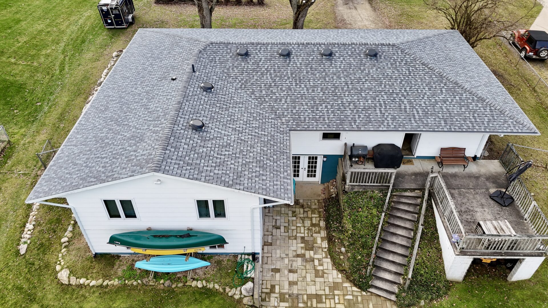 The homeowner found us by searching for roofers near me in Buchanan Michigan. To enhance roof performance, we removed the existing shingles and accessed the attic to adjust the insulation, ensuring optimal airflow from the soffit vents to the newly installed AirHawk static vents. We replaced any damaged wood to create a clean roof deck and applied waterproof ice and water shield underlayment to all eave edges, valleys, and roof penetrations. On the remaining roof areas, we installed all new metal flashings and covered those roof sections with RoofRunner synthetic felt.