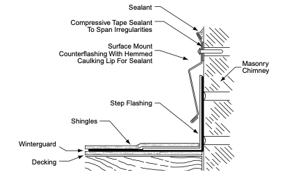 - We then install waterproof underlayment ice and water shield and it is adhered to the decking around the chimney and the wall of the chimney.