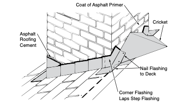 - The metal flashing strip should be bent, using a metal brake, to extend at least 2″ up the vertical wall and at least 3″ onto the last shingle course; that is, to the top of the cutout.