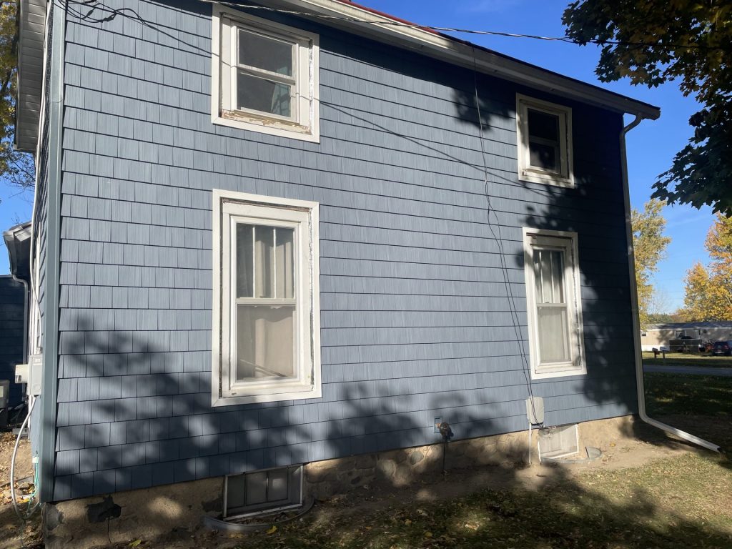This home located in Eau Claire needed a significant makeover given the fact that it was built decades ago when asphalt siding was popular. Given that the homeowner chose the beautiful Cedar Impressions siding by CertainTeed which required the removal of the original siding and the installation of OSB decking as is required by CertainTeed given the fact that this beautiful siding requires a hard driven nail in the middle of the panel so that it can expands out from that nail with the changes in the temperatures.