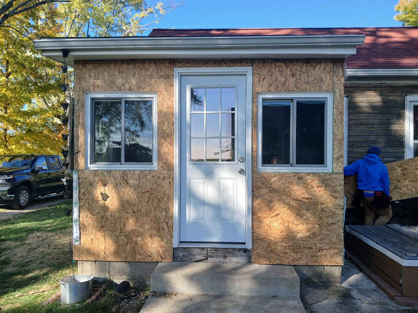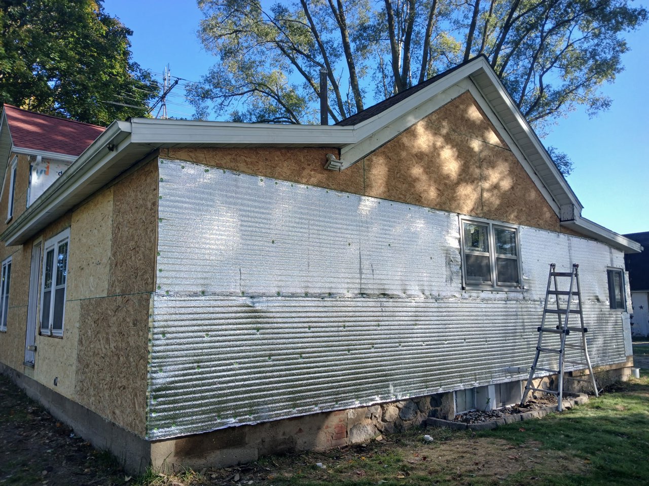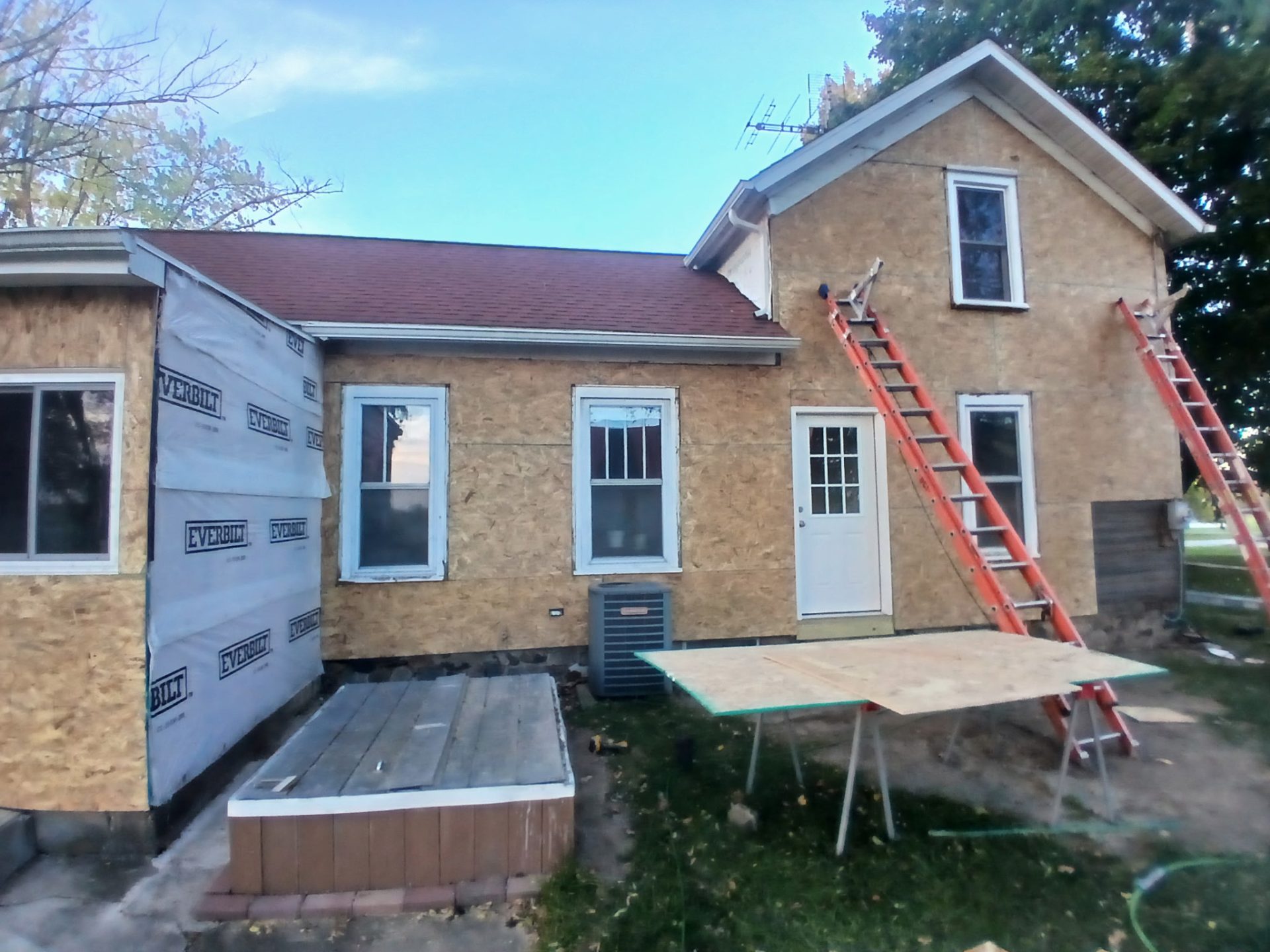 This home located in Eau Claire needed a significant makeover given the fact that it was built decades ago when asphalt siding was popular. Given that the homeowner chose the beautiful Cedar Impressions siding by CertainTeed which required the removal of the original siding and the installation of OSB decking as is required by CertainTeed given the fact that this beautiful siding requires a hard driven nail in the middle of the panel so that it can expands out from that nail with the changes in the temperatures.