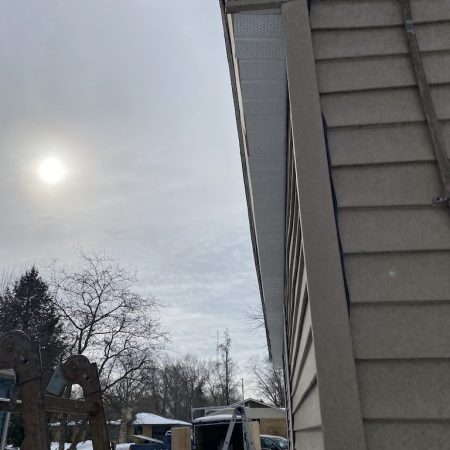 Style: White Aluminum Fascia, Fully-Vented Aluminum Soffit, Seamless Gutters & Downspouts with Gutter Topper Solution Gutter Protection
