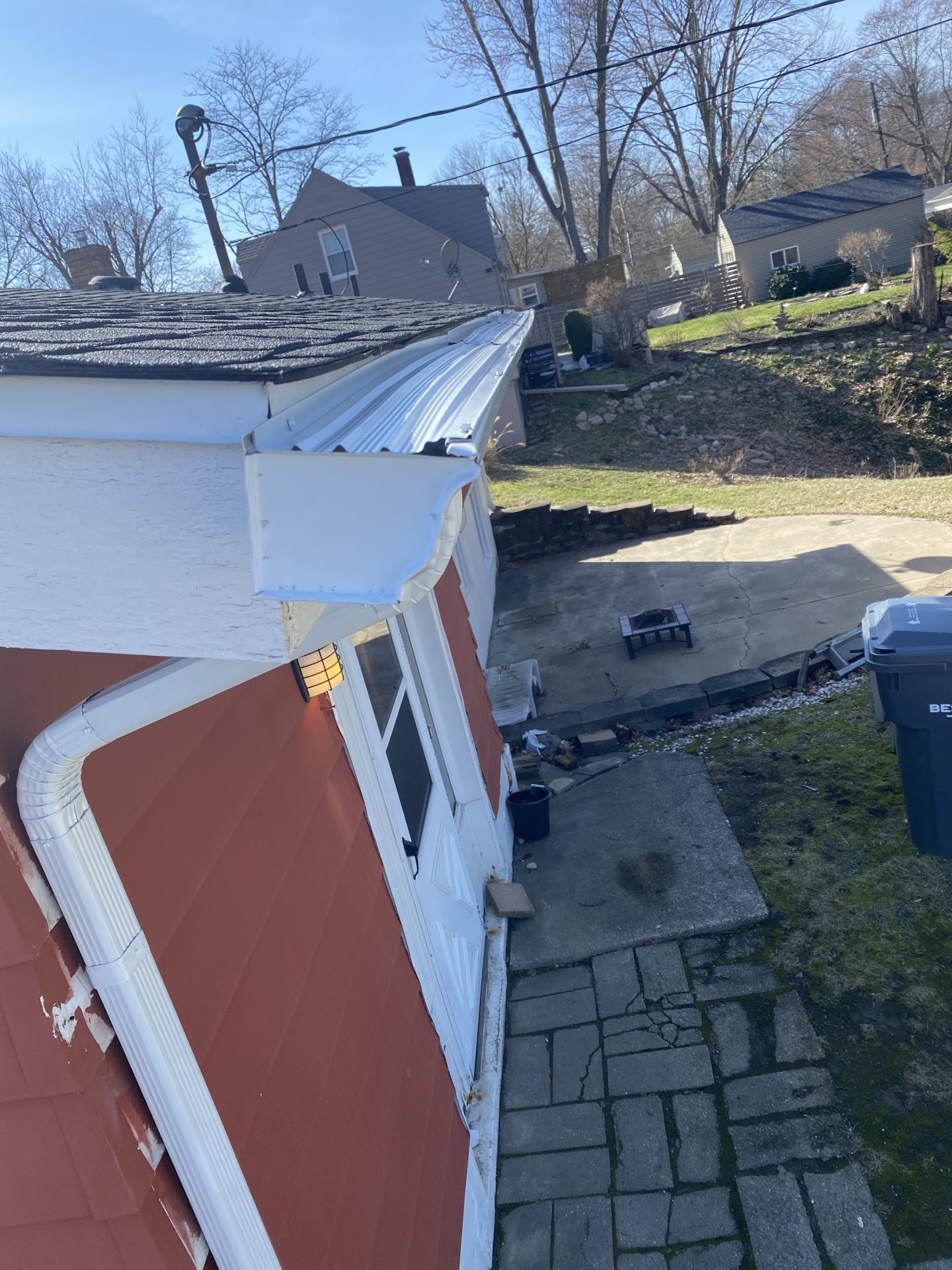 A homeowner contacted us to request an update to her existing gutter system. She had experienced an exceptionally harsh winter that this region had not witnessed in several years. Consequently, she sought our expertise in installing our 15-year warranty seamless gutter, downspout, and Gutter Topper Solution gutter system.