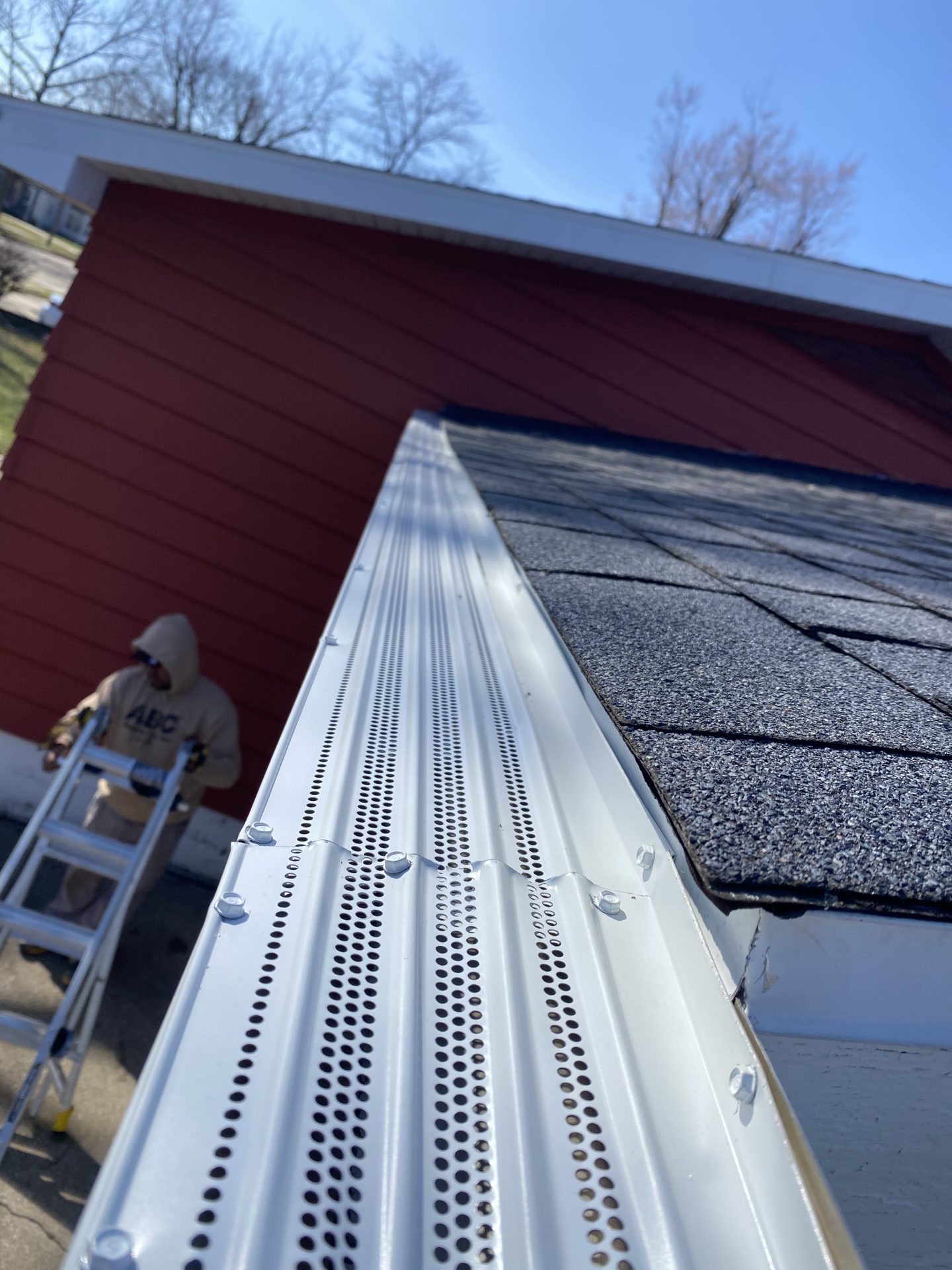 PROJECT DETAILS: Installed white seamless gutters, downspouts & Gutter Topper Solution