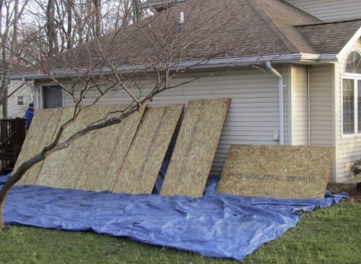 Tarps and OSB sheathing can be utilized to safeguard all landscaping, decks, walls, windows, and doors. Netting may also be employed during warmer and more humid weather conditions to facilitate airflow for the landscaping. Additionally, a portable dumpster can be utilized to relocate the debris to a designated waste disposal container.